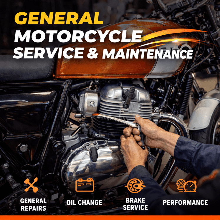 Complete multi-point motorcycle inspection that covers engine oil change, coolant check, clutch adjustment, brake inspection, chain lubrication, tyre pressure check, and full-body cleaning. Ensures a smooth, safe, and performance-optimized riding experience.