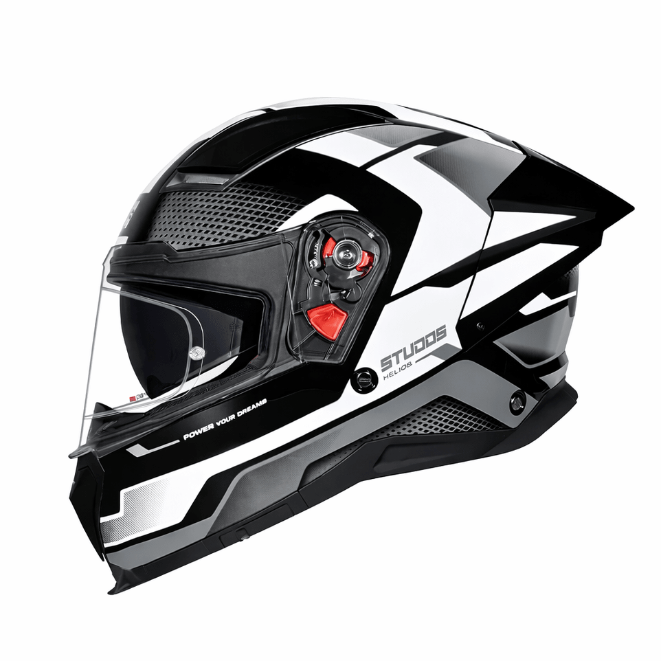 Looking for a Studds Helios black white matt helmet in Port Blair? This full-face helmet features a non-gloss matte finish, giving it a more premium and refined look compared to standard glossy helmets.
